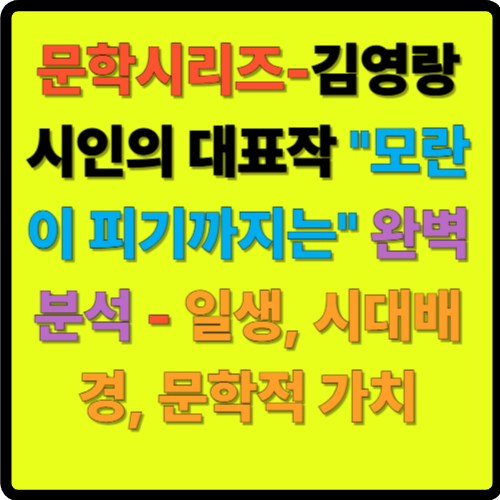 김영랑"모란이 피기까지는"은 세대를 넘어 많은 사람들의 심금을 울렸으며, 지금도 한국 현대시의 최고의 작품으로 평가받고 있습니다. 기다림절제된 표현자연을 통한 인생의 성찰김영랑
