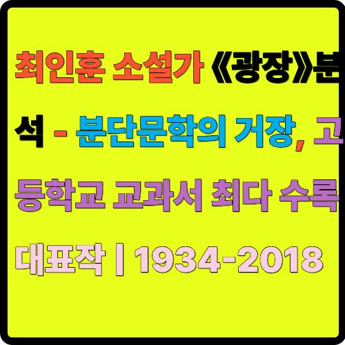 #최인훈 #광장 #분단문학 #교과서수록 #분단 #1960년 #문학거장 #대표작 #주인공이명준 #이데올로기 #남북관계 #4·19혁명 #실존 #광장과밀실 #구운몽 #회색인 #서유기 #희곡 #극작가 #교수 #한국현대문학 #문학사 #고전문학 #패러디 #환상소설 #관념문학 #분단체험 #전쟁문학 #인간존재 #자유와사랑 #고등학교최다수록 #중편소설 #필수교재 #문학교육 #지식인 #문학평론가 #가시오가피 #1934년 #2018년 #서울예대 #창작
